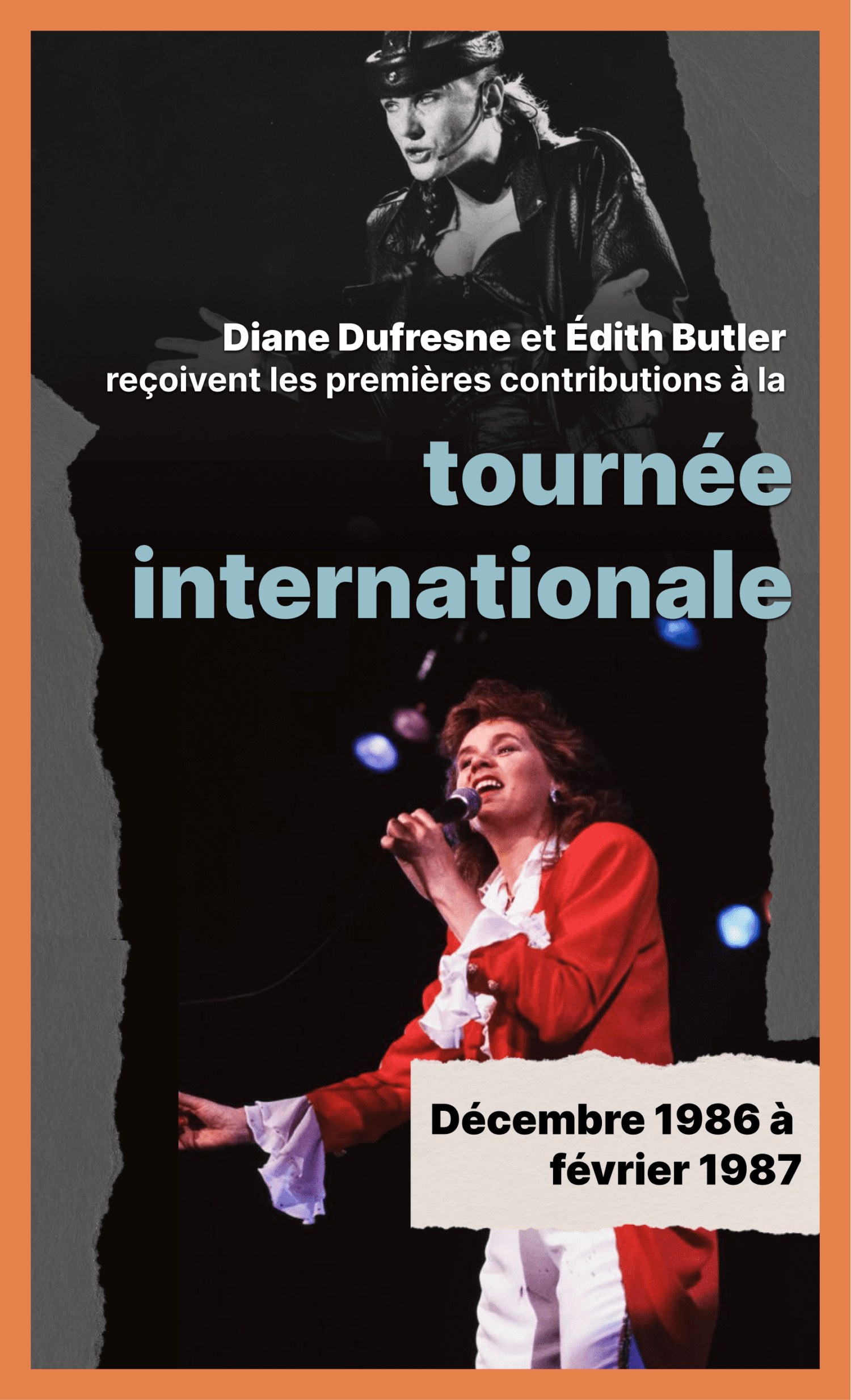 Enfin, les premières contributions à la tournée internationale sont attribuées à Diane Dufresne et Édith Butler.